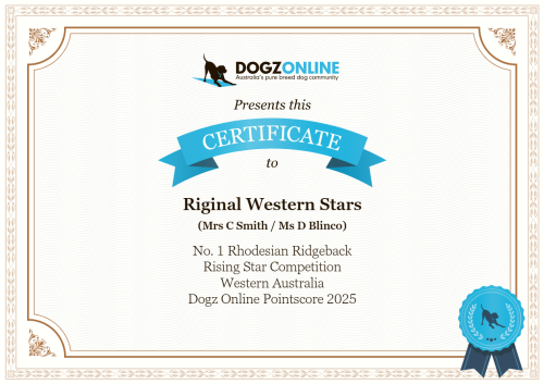 Dogzonline results for 2025* No. 1 – Rhodesian Ridgeback – Rising Star Competition – Western Australia